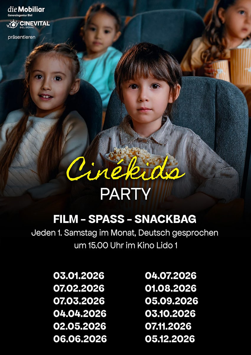 Le film est annoncé 10 jours à l'avance. Informations ici : https://www.cinevital.ch/fr/biel/evenements/cinekidsparty-mobiliere.html